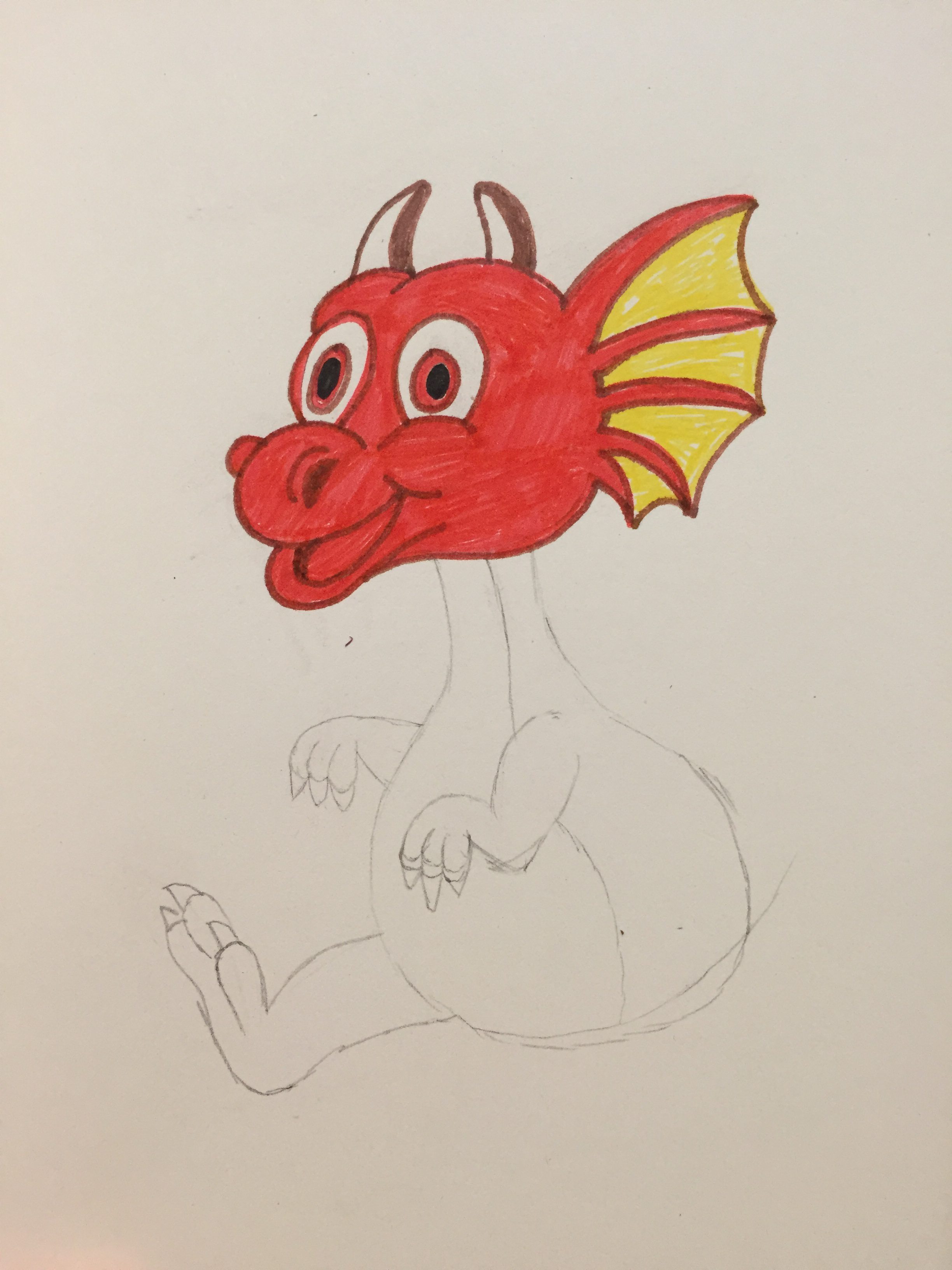 I decided to draw for around 45 minutes, unless I finish before. That meant that today I finished the arms and body of yesterday’s dragon.