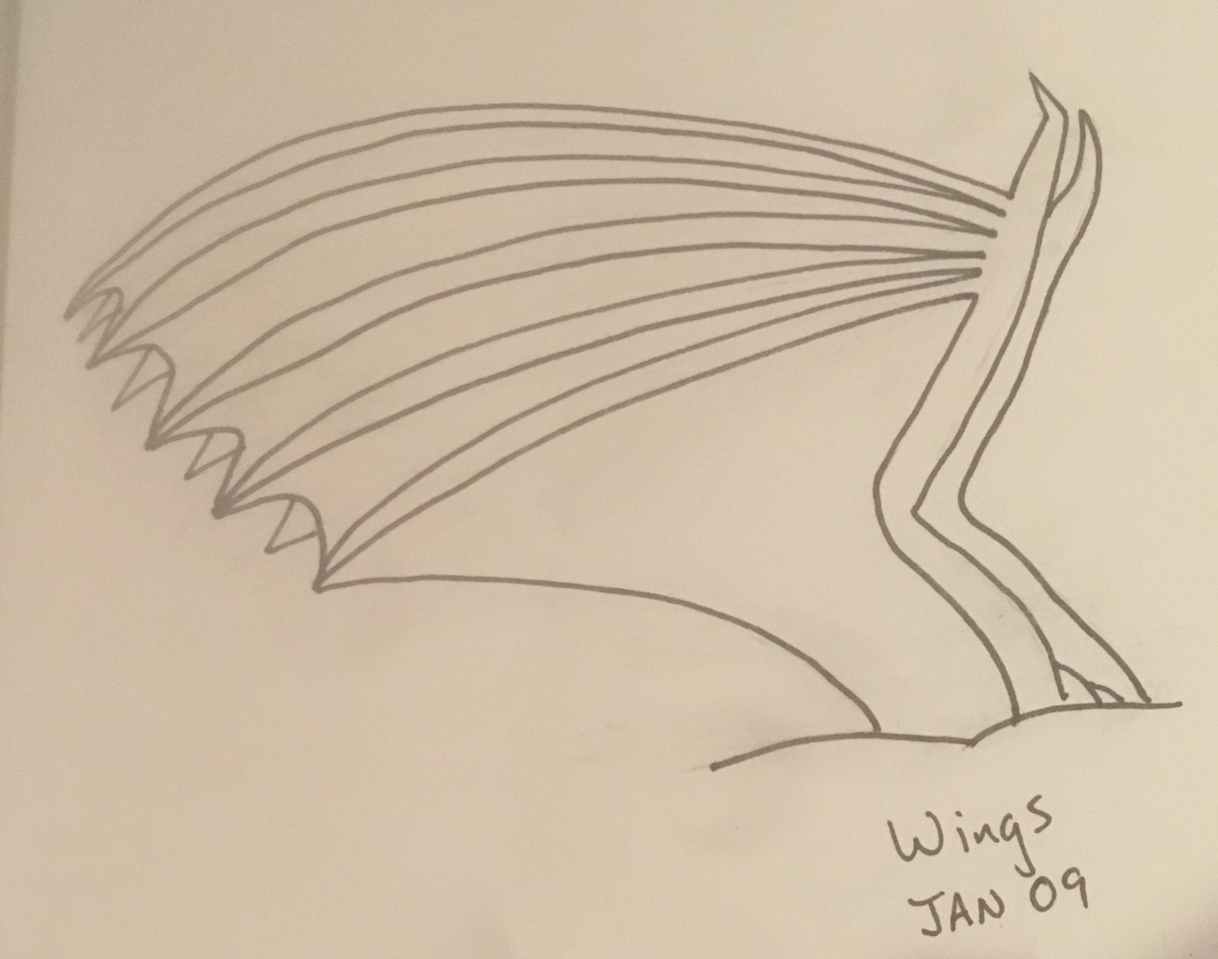 But when I sat down to draw my dragon today, I focused in on the wing. I looked up instructions. I drew the wing, with its strong bones and stretching skin.
