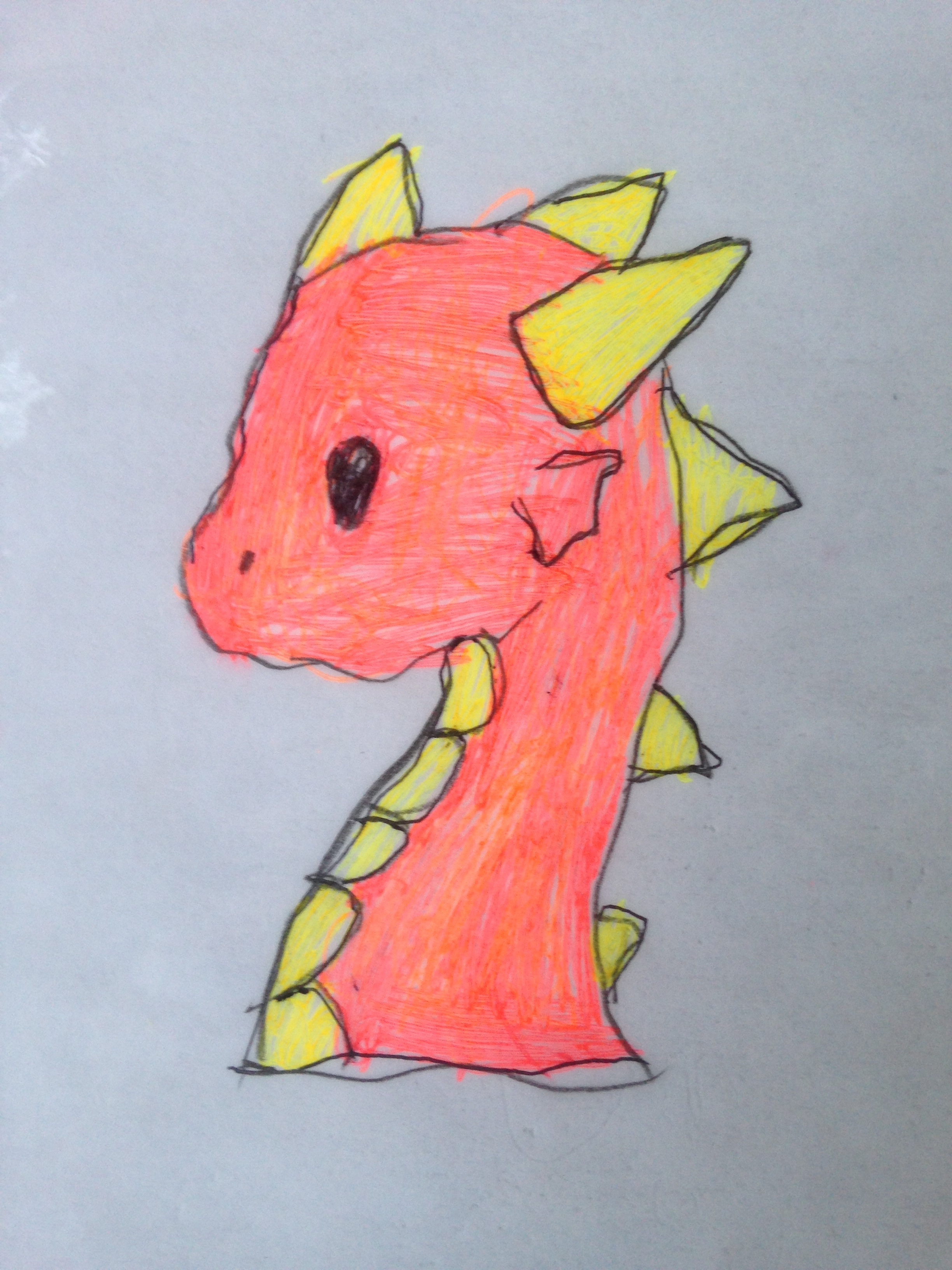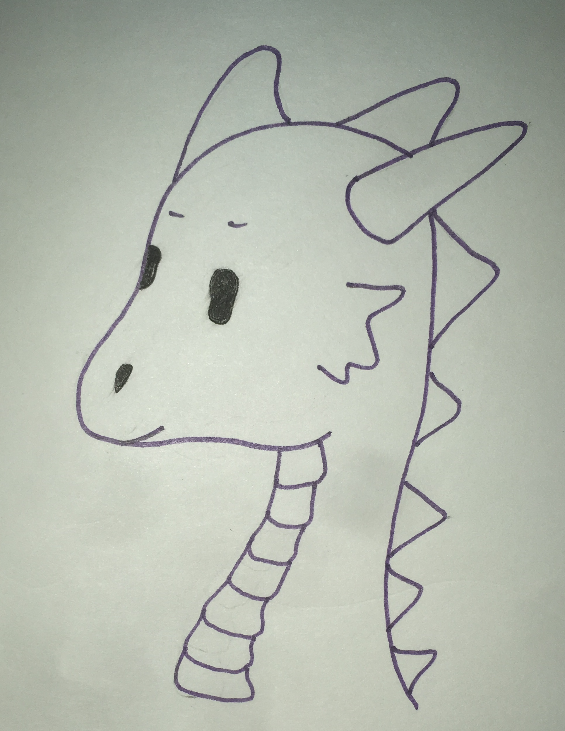 Today, I got two dragons from this big thinker. How lucky am I to get to see her hard work? She’s leaps and bounds ahead of me already, but I decided to draw a dragon just like hers. I couldn’t get my eyes to stop being creepy, so I added a tiny smile. Her dragon is a wonder in red, mine is purple and needs to be colored in. Clearly, they are friends.