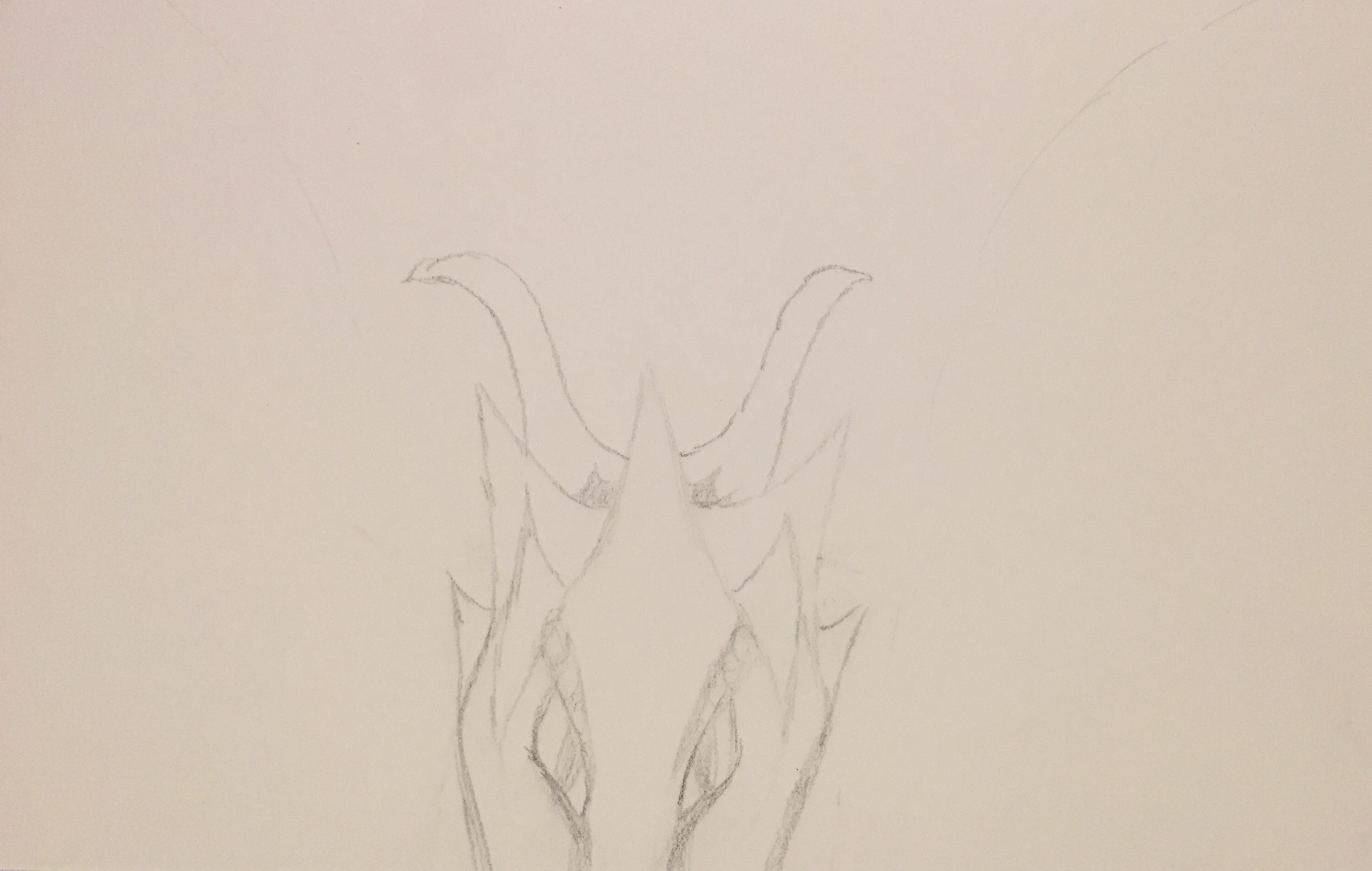 The dragon I’ve started for him is peeking over the side of the page. The face went from stout and short to long and lean. I want to do more with the shading, and develop the horns a bit more. Plus, there will be claws, and wings.