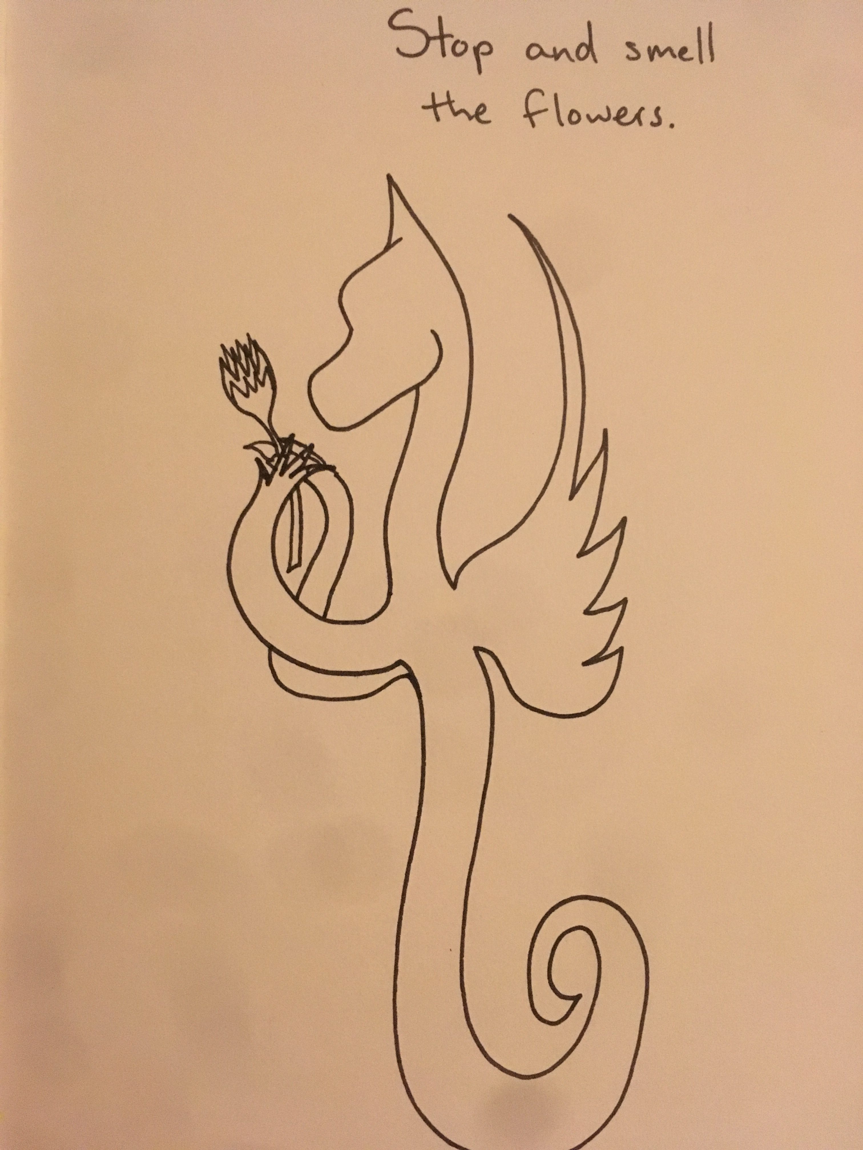 I quickly drew this little dragon holding a flower. I did not use pencil and then ink, I just went straight to ink.