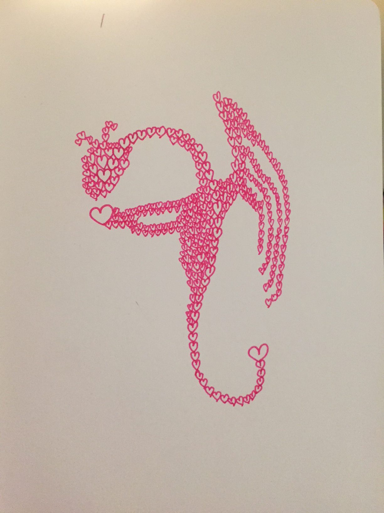So, here’s a ridiculous dragon made of pink hearts. May your days be as sweet as mine.